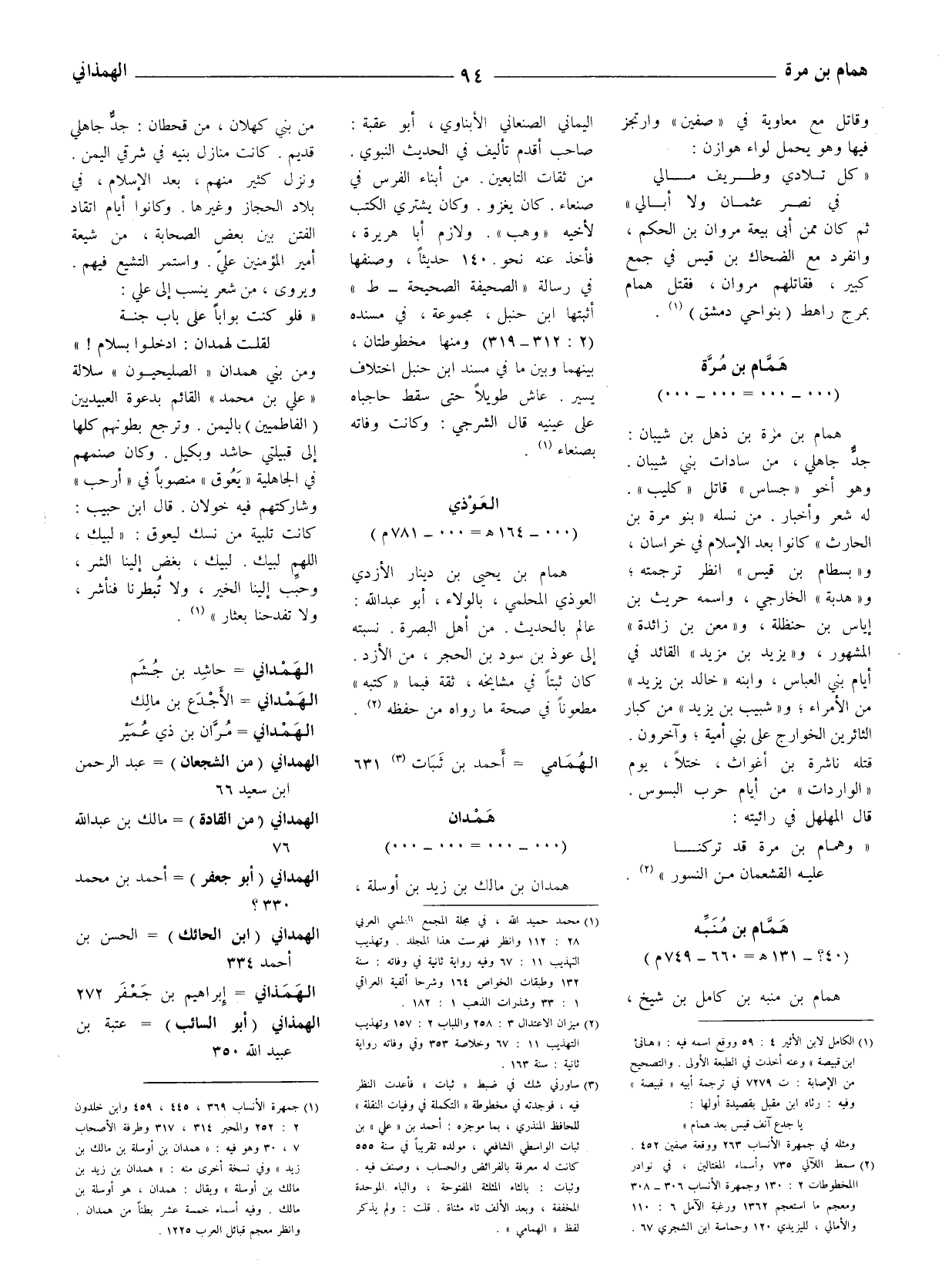 (1) جمهرة الأنساب 369، 445، 459 وابن خلدون 2: 252 والمحبر 314، 317 وطرفة الأصحاب 7، 30 وهو فيه: " همدان بن أو سلة بن مالك بن زيد " وفي نسخة أخرى منه: " همدان بن زيد بن مالك بن أو سلة " ويقال: همدان، هو أو سلة بن مالك. وفيه أسماء خمسة عشر بطنا من همدان. وانظر معجم قبائل العرب 1225.