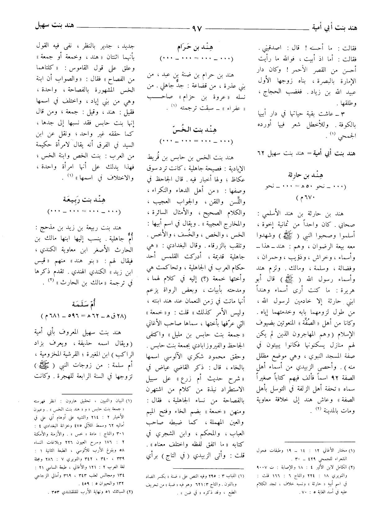 (1) البيان والتبيين، تحقيق هارون: انظر فهرسته " جمعة بنت حابس " و " هند بنت الخس ".