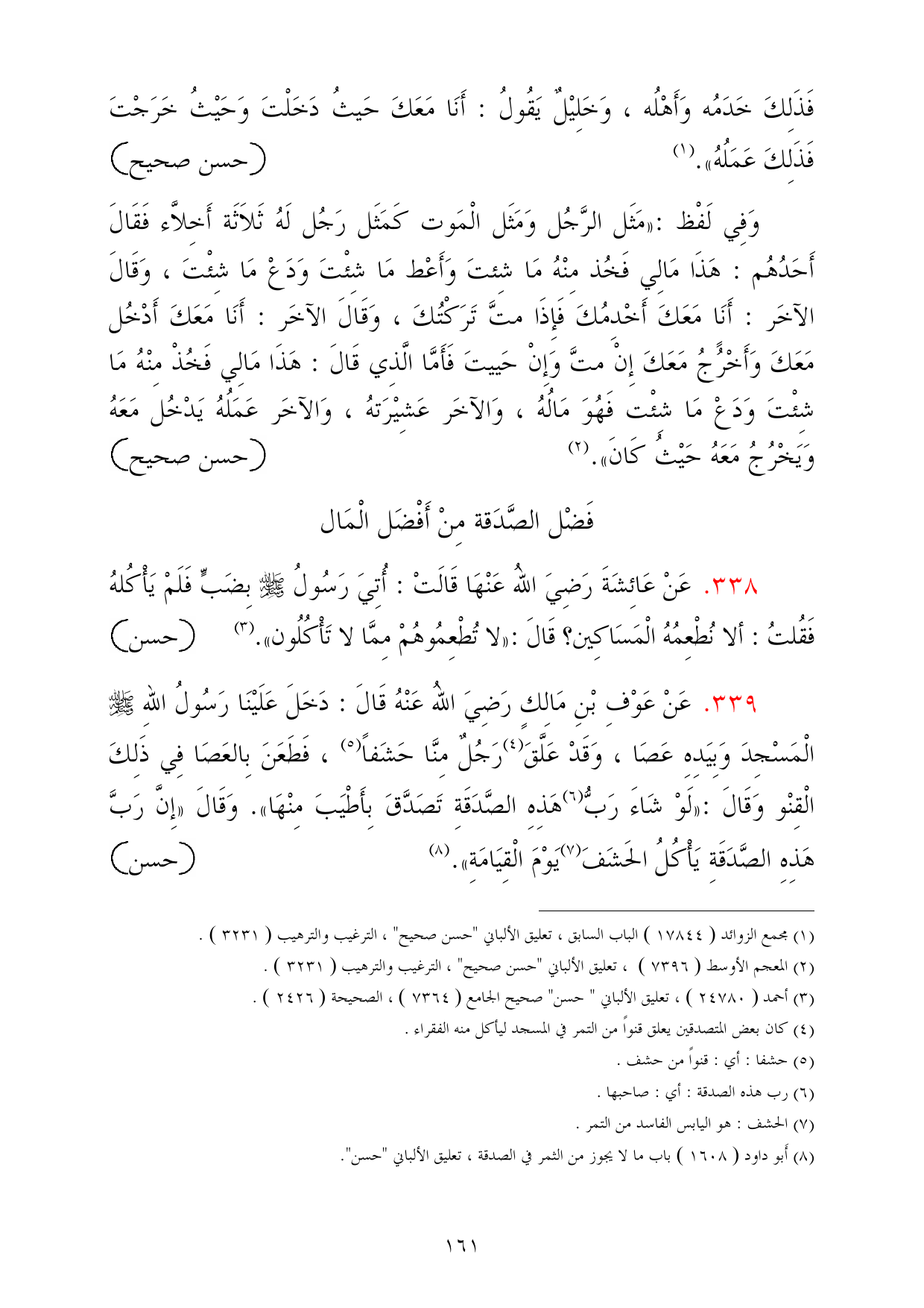 (¬8) أَبو داود (1608) باب ما لا يجوز من الثمر في الصدقة، تعليق الألباني "حسن".