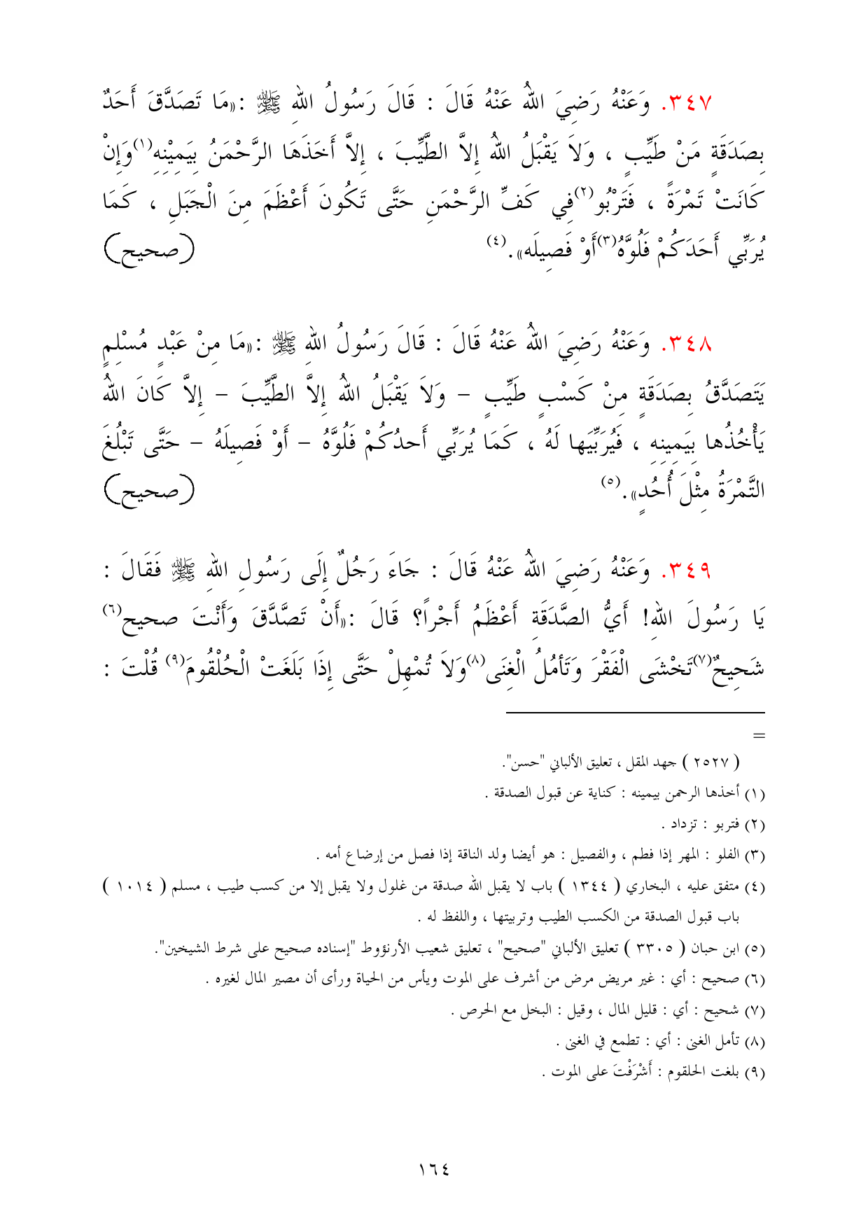 (¬4) متفق عليه، البخاري (1344) باب لا يقبل الله صدقة من غلول ولا يقبل إلا من كسب طيب، مسلم (1014) باب قبول الصدقة من الكسب الطيب وتربيتها، واللفظ له.