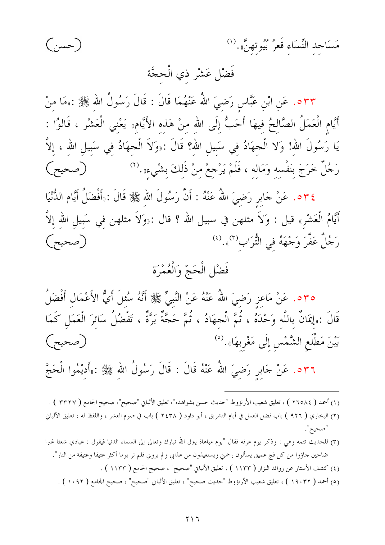 536 - عَنْ جَابِرٍ رَضِيَ اللهُ عَنْهُ قَالَ: قَالَ رَسُولُ اللهِ - صلى الله عليه وسلم -: «أَدِيْمُوا الْحَجَّ