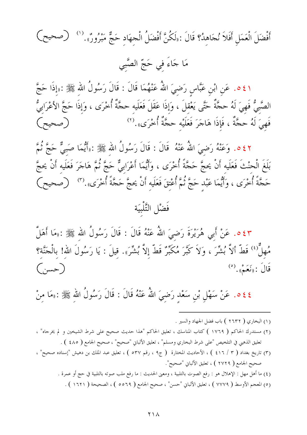(¬2) مستدرك الحاكم (1769) كتاب المناسك، تعليق الحاكم "هذا حديث صحيح على شرط الشيخين ولم يخرجاه"، تعليق الذهبي في التلخيص "على شرط البخاري ومسلم"، تعليق الألباني "صحيح"، صحيح الجامع (485).