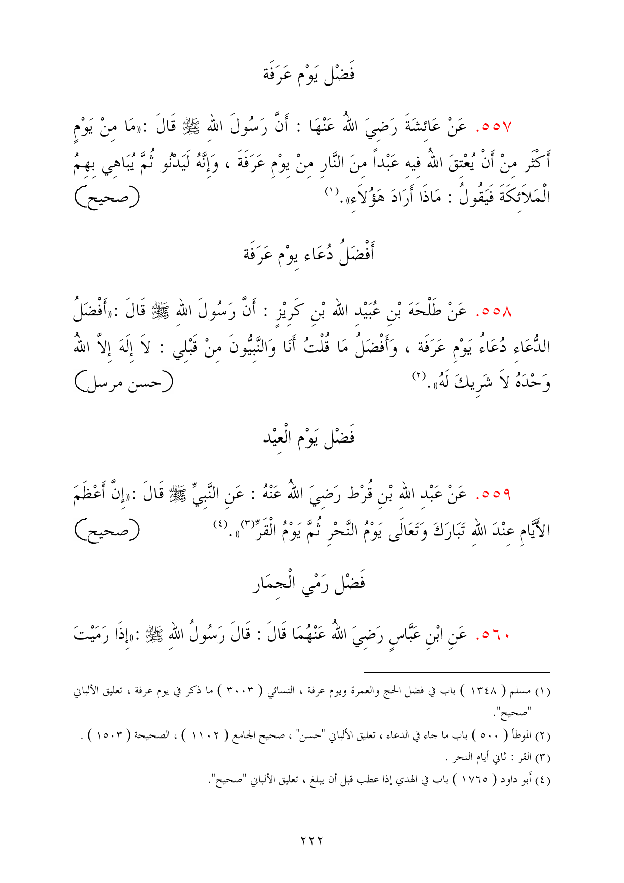 (¬1) مسلم (1348) باب في فضل الحج والعمرة ويوم عرفة، النسائي (3003 (ما ذكر في يوم عرفة، تعليق الألباني "صحيح".