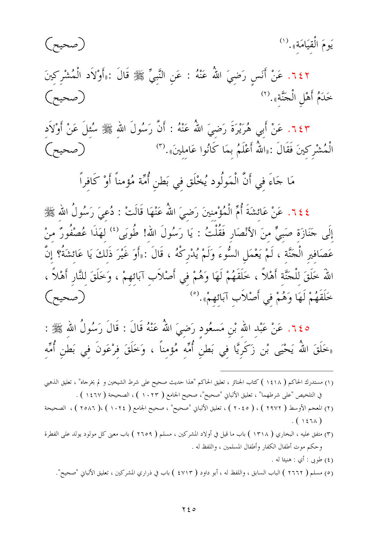 (¬5) مسلم (2662) الباب السابق، واللفظ له، أبو داود (4713) باب في ذراري المشركين، تعليق الألباني "صحيح".