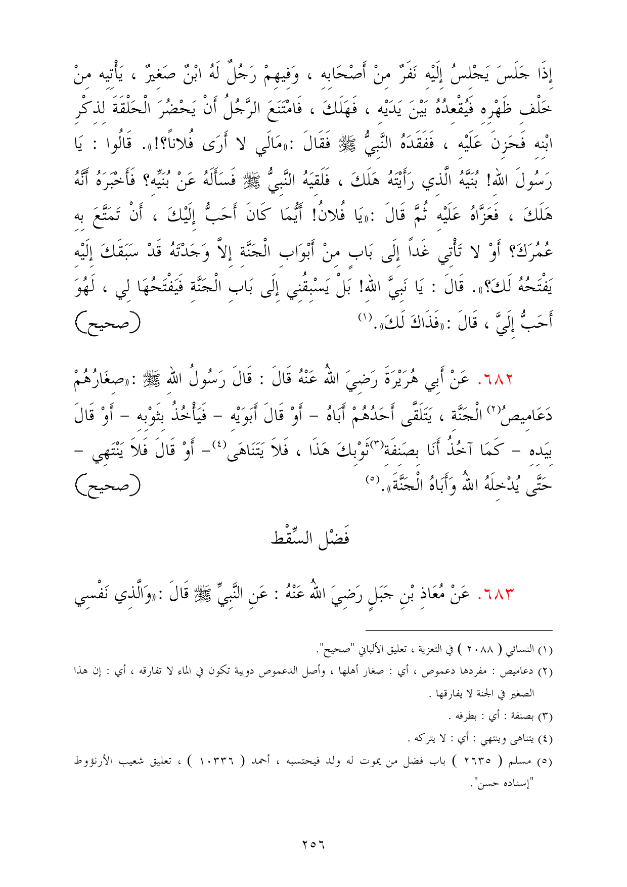 (¬5) مسلم (2635) باب فضل من يموت له ولد فيحتسبه، أحمد (10336)، تعليق شعيب الأرنؤوط "إسناده حسن".