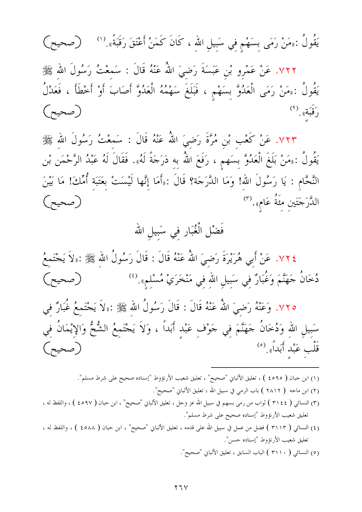 (¬3) النسائي (3144 (ثواب من رمى بسهم في سبيل الله عز وجل، تعليق الألباني "صحيح"، ابن حبان (4597)، واللفظ له، تعليق شعيب الأرنؤوط "إسناده صحيح على شرط مسلم".