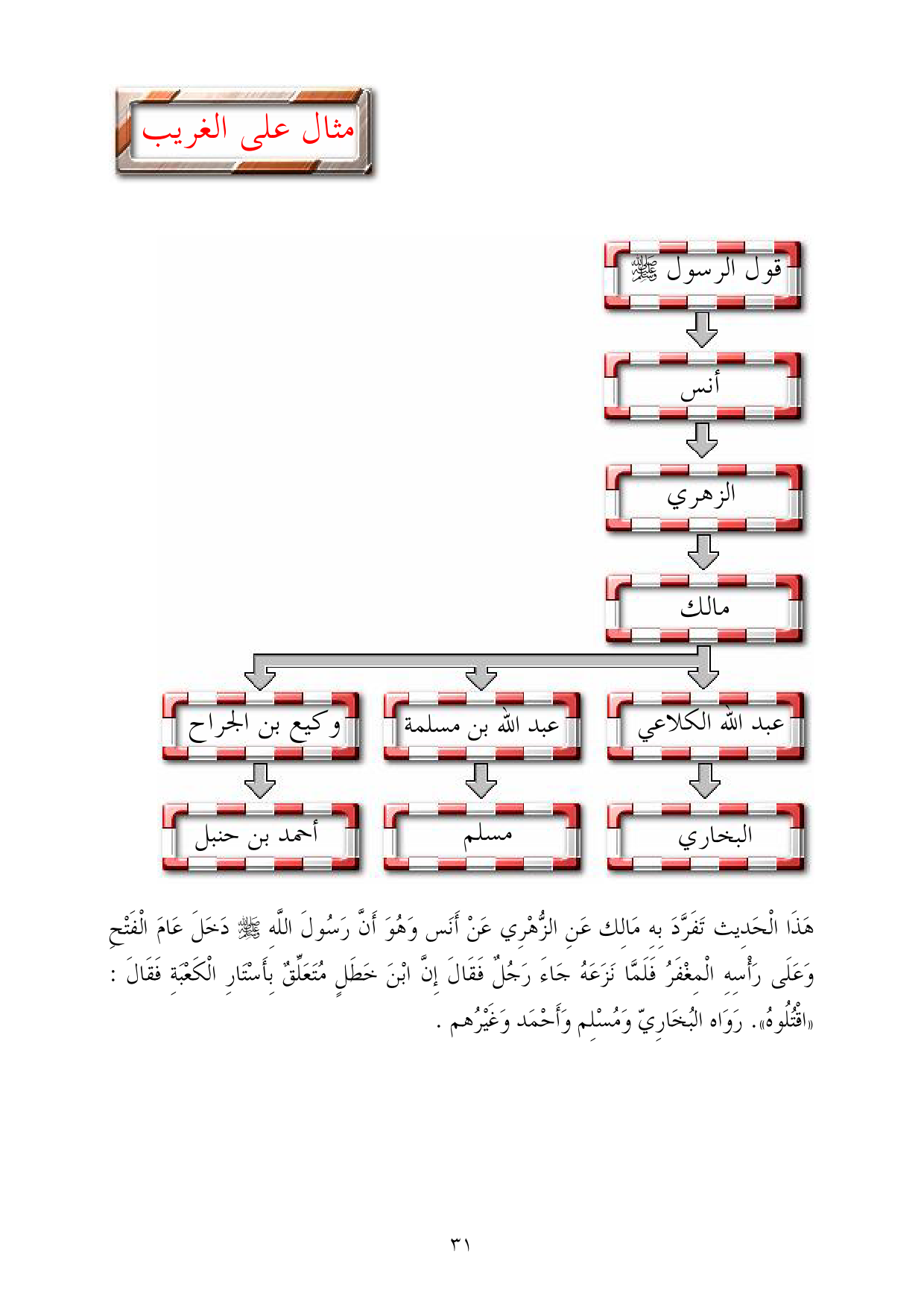 هَذَا الْحَدِيث تَفَرَّدَ بِهِ مَالِك عَنِ الزُّهْرِي عَنْ أَنَس وَهُوَ أَنَّ رَسُولَ اللَّهِ - صلى الله عليه وسلم - دَخَلَ عَامَ الْفَتْحِ وَعَلَى رَأْسِهِ الْمِغْفَرُ فَلَمَّا نَزَعَهُ جَاءَ رَجُلٌ فَقَالَ إِنَّ ابْنَ خَطَلٍ مُتَعَلِّقٌ بِأَسْتَارِ الْكَعْبَةِ فَقَالَ: «اقْتُلُوهُ». رَوَاه البُخَارِيّ وَمُسْلِم وَأَحْمَد وَغَيْرُهم.
