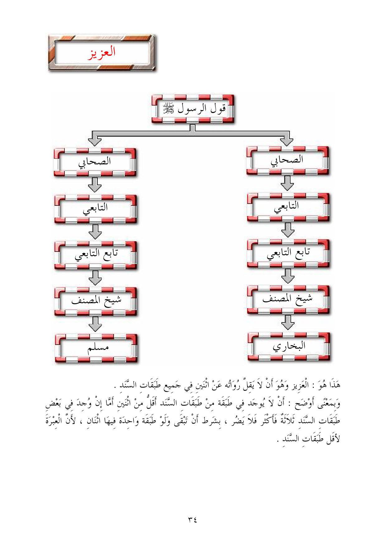 هَذَا هُوَ: الْعَزِيز وَهُوَ أَنْ لاَ يَقِلَّ رُوَاتُه عَنْ اثْنَينِ فِي جَمِيع طَبَقَاتِ السَّنَدِ.