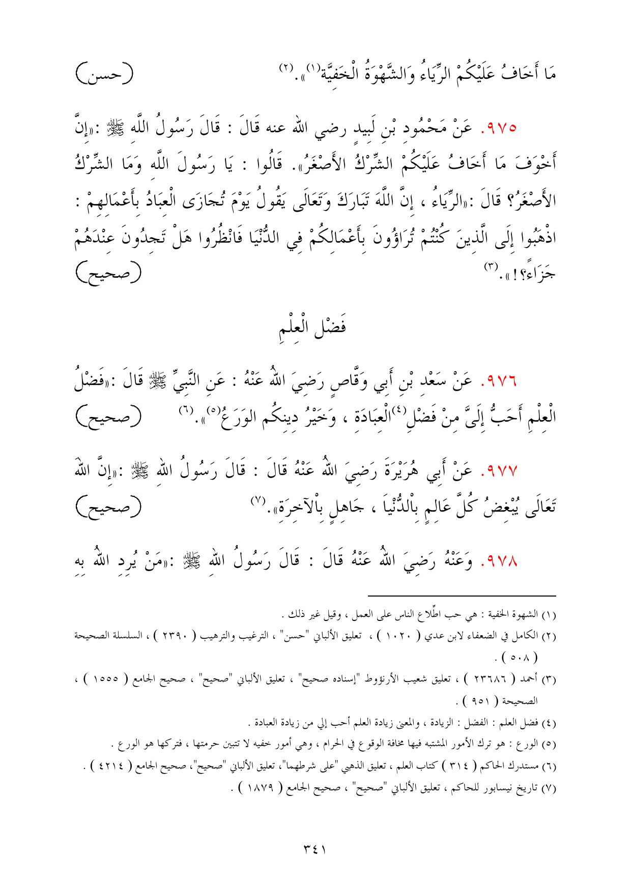 (¬6) مستدرك الحاكم (314) كتاب العلم، تعليق الذهبي "على شرطهما"، تعليق الألباني "صحيح"، صحيح الجامع (4214).