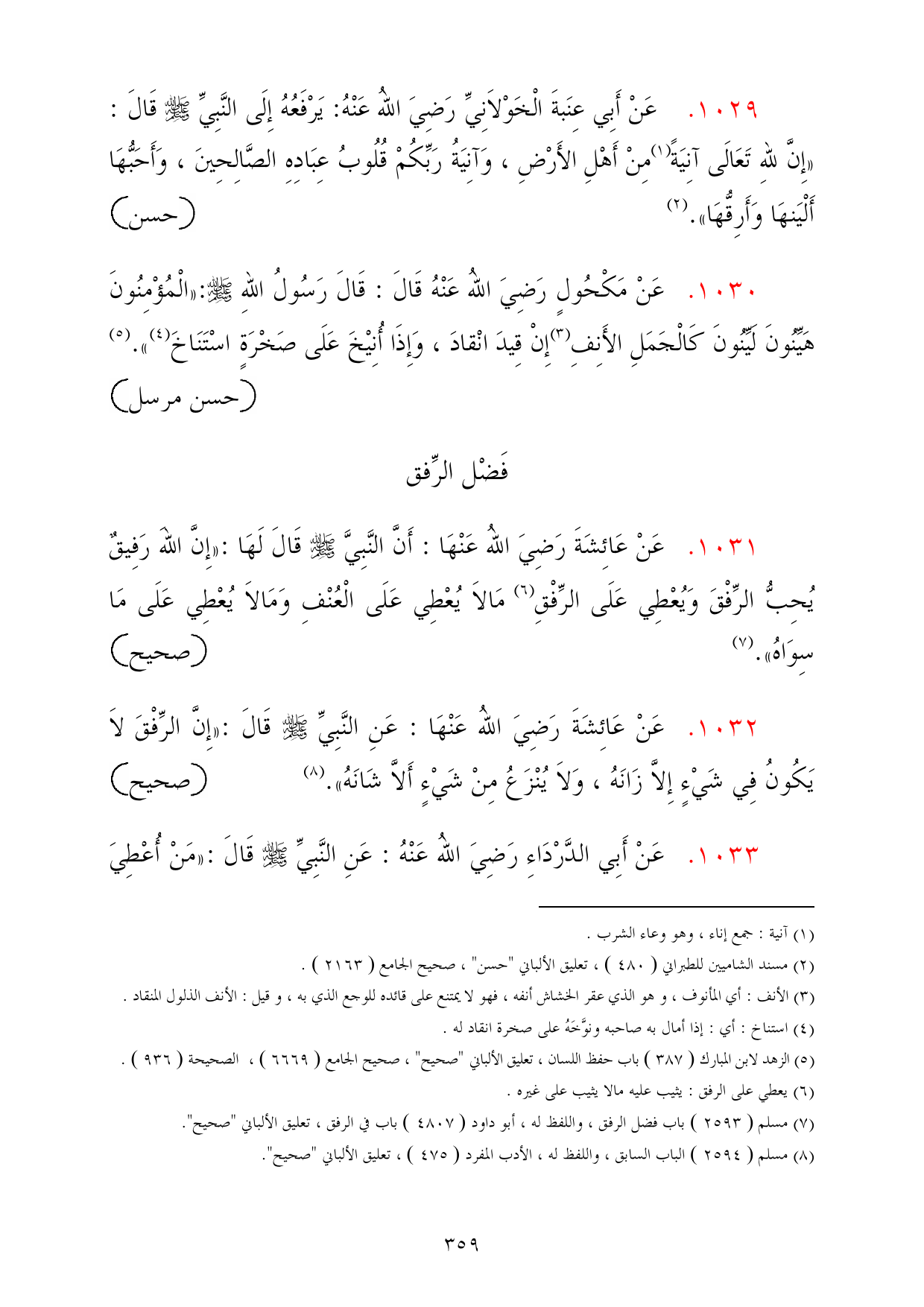 (¬7) مسلم (2593) باب فضل الرفق، واللفظ له، أبو داود (4807) باب في الرفق، تعليق الألباني "صحيح".