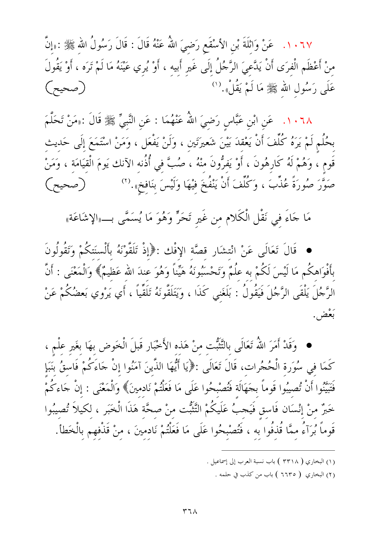 مَا جَاءَ فِي نَقْل الْكَلام مِن غَيرِ تَحَرٍّ وَهُوَ مَا يُسَمَّى بـ «الإشَاعَة»