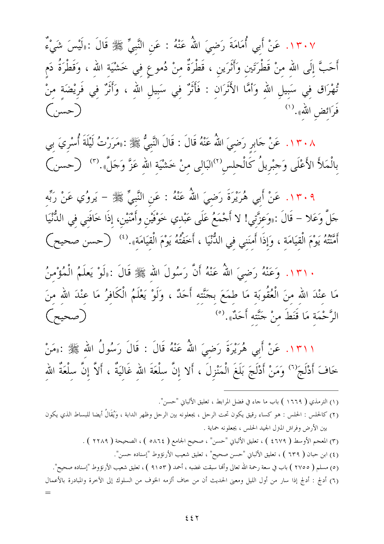 1311 - عَنْ أَبِي هُرَيْرَةَ رَضِيَ اللهُ عَنْهُ قَالَ: قَالَ رَسُولُ اللهِ - صلى الله عليه وسلم -: «مَنْ خَافَ أَدْلَجَ (¬6) وَمَنْ أَدْلَجَ بَلَغَ الْمَنْزِلَ، أَلا إِنَّ سِلْعَةَ اللهِ غَالِيَةٌ، أَلاَّ إِنَّ سِلْعَةٌ اللهِ