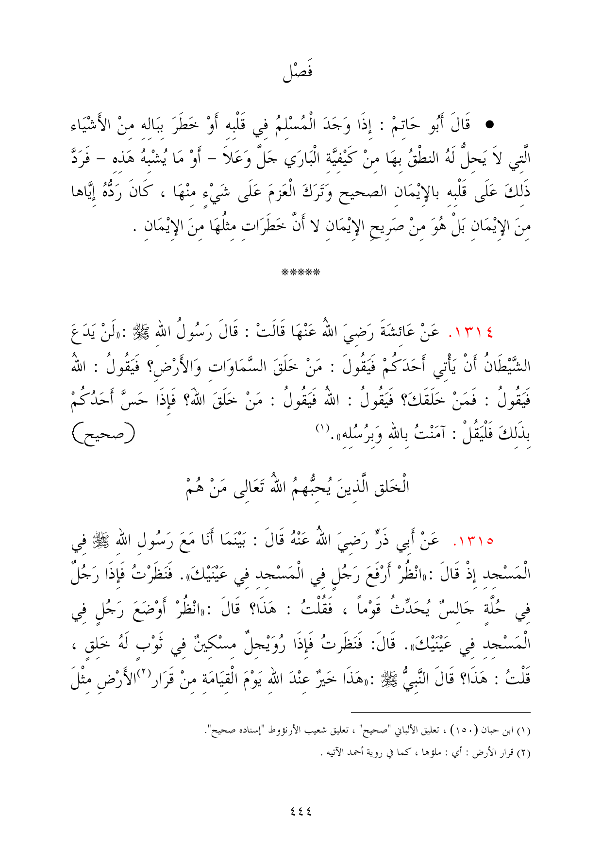 (¬1) ابن حبان (150)، تعليق الألباني "صحيح"، تعليق شعيب الأرنؤوط "إسناده صحيح".
