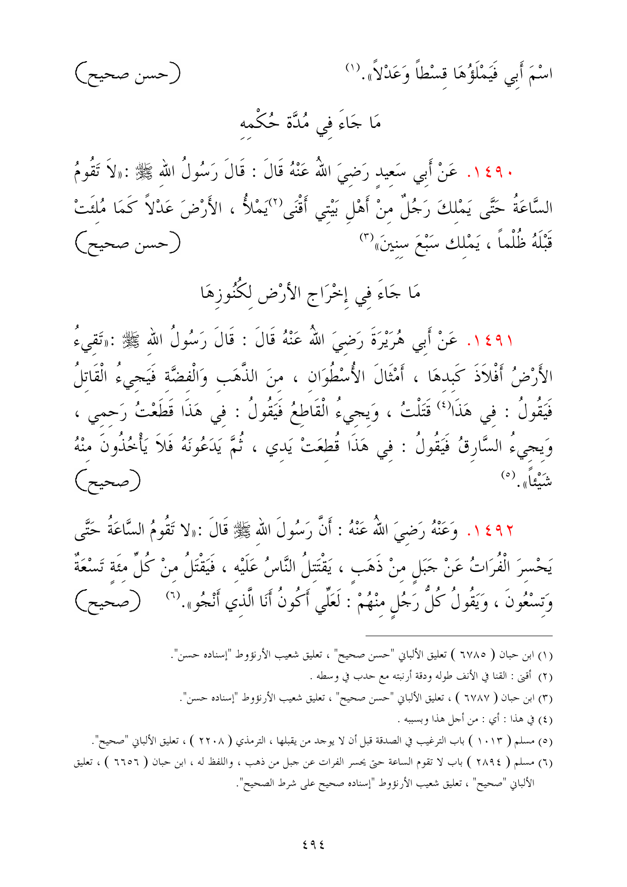(¬6) مسلم (2894) باب لا تقوم الساعة حتى يحسر الفرات عن جبل من ذهب، واللفظ له، ابن حبان (6656)، تعليق الألباني "صحيح"، تعليق شعيب الأرنؤوط "إسناده صحيح على شرط الصحيح".