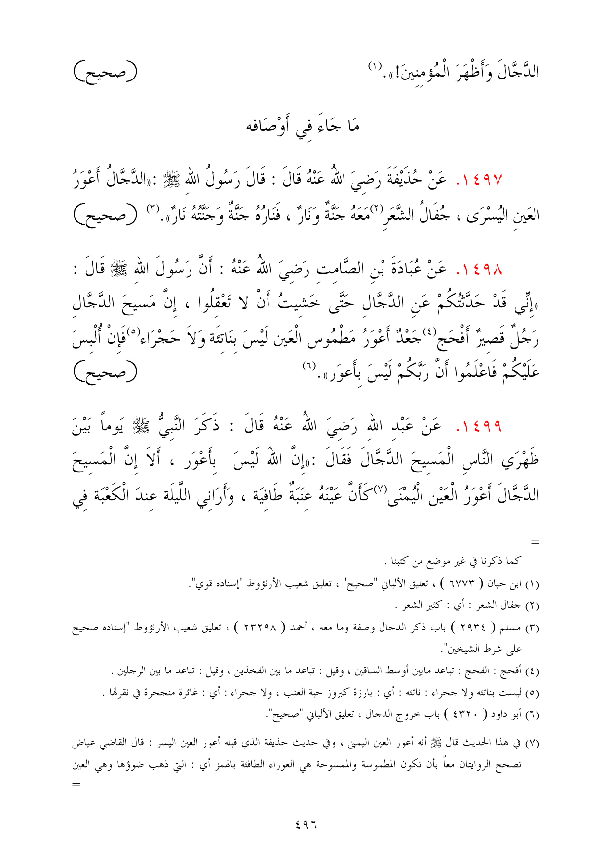 (¬6) أبو داود (4320) باب خروج الدجال، تعليق الألباني "صحيح".