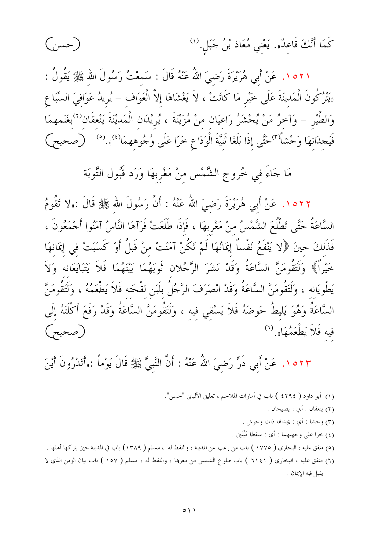 1523 - عَنْ أَبِي ذَرٍّ رَضِيَ اللهُ عَنْهُ: أَنَّ النَّبِيَّ - صلى الله عليه وسلم - قَالَ يَوْماً: «أَتَدْرُونَ أَيْنَ