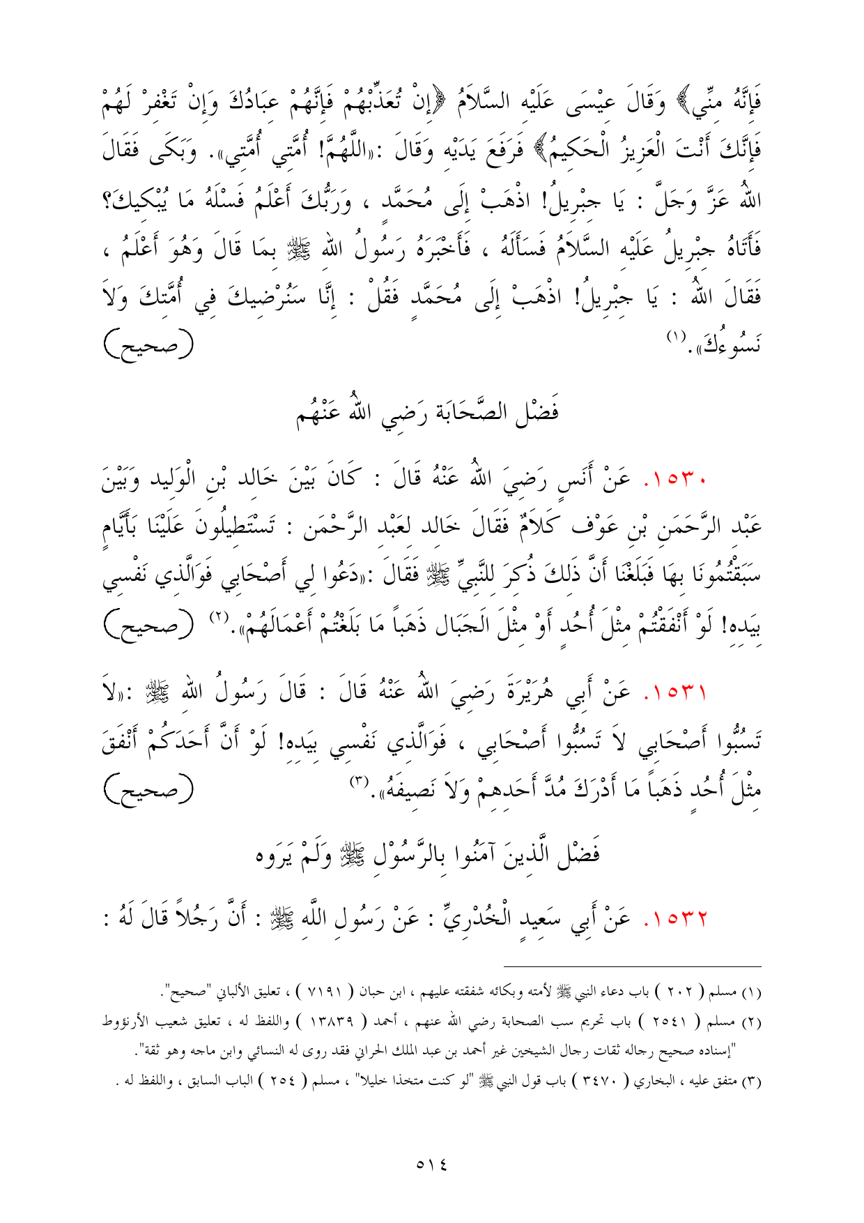 (¬2) مسلم (2541) باب تحريم سب الصحابة رضي الله عنهم، أحمد (13839 (واللفظ له، تعليق شعيب الأرنؤوط "إسناده صحيح رجاله ثقات رجال الشيخين غير أحمد بن عبد الملك الحراني فقد روى له النسائي وابن ماجه وهو ثقة".