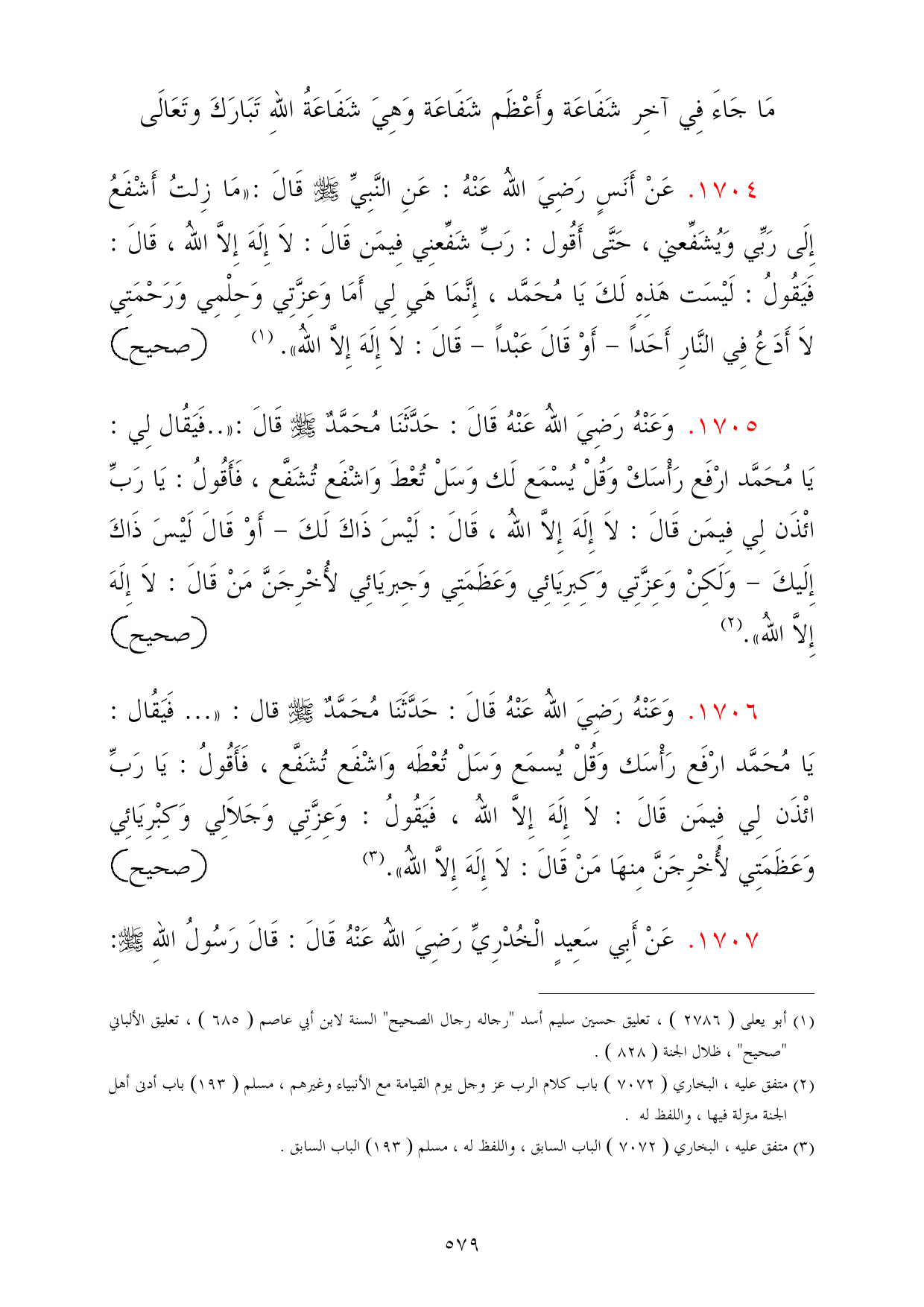 (¬1) أبو يعلى (2786)، تعليق حسين سليم أسد "رجاله رجال الصحيح" السنة لابن أبي عاصم (685)، تعليق الألباني "صحيح"، ظلال الجنة (828).