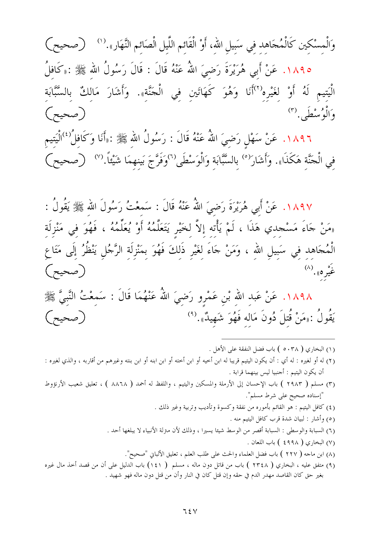 (¬3) مسلم (2983) باب الإحسان إلى الأرملة والمسكين واليتيم، واللفظ له أحمد (8868)، تعليق شعيب الأرنؤوط "إسناده صحيح على شرط مسلم".