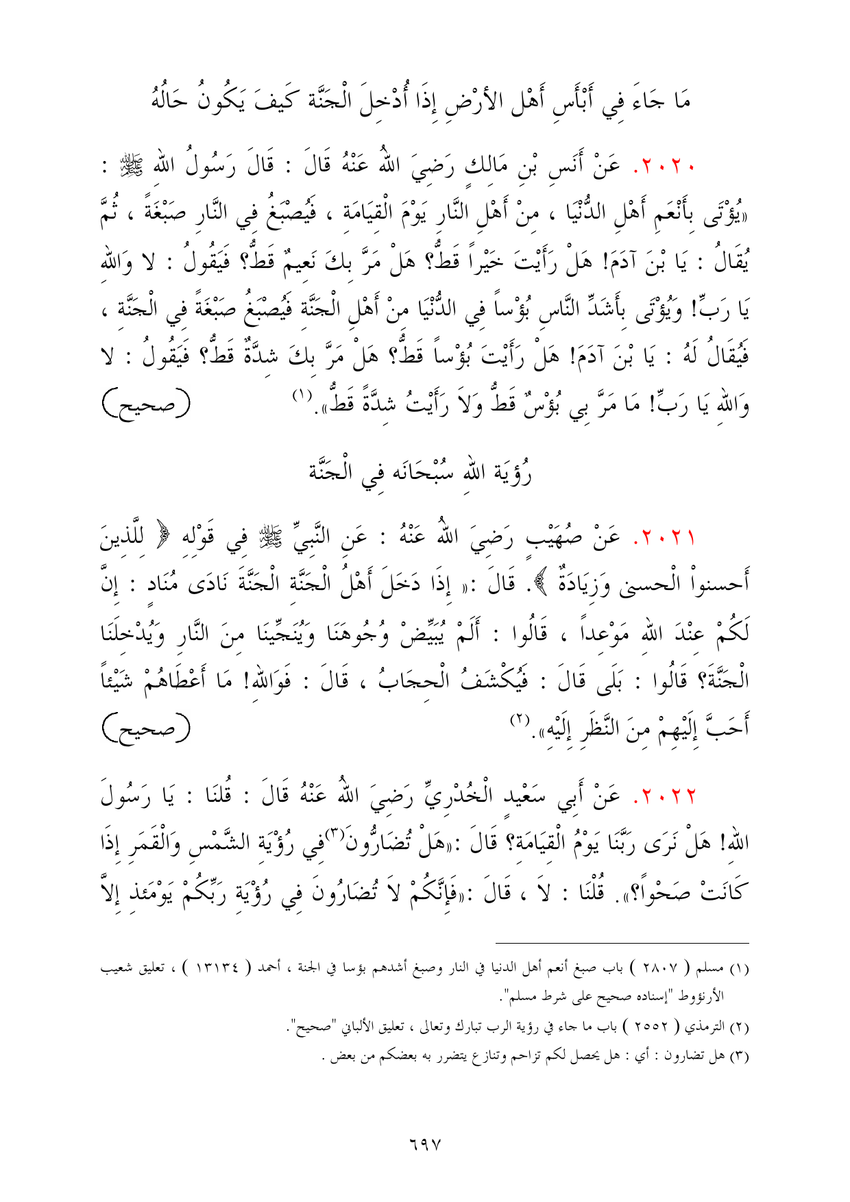 (¬2) الترمذي (2552) باب ما جاء في رؤية الرب تبارك وتعالى، تعليق الألباني "صحيح".