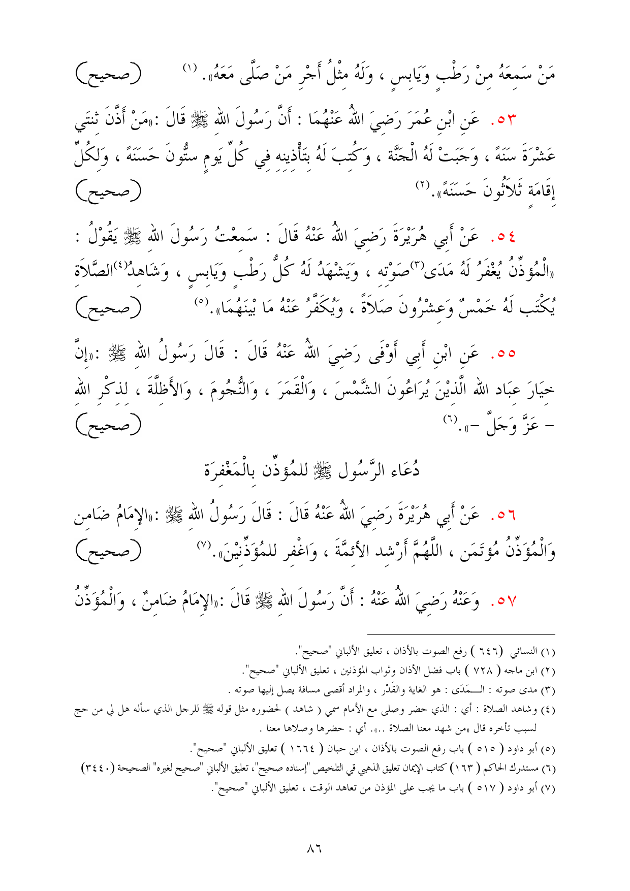 (¬7) أبو داود (517) باب ما يجب على المؤذن من تعاهد الوقت، تعليق الألباني "صحيح".