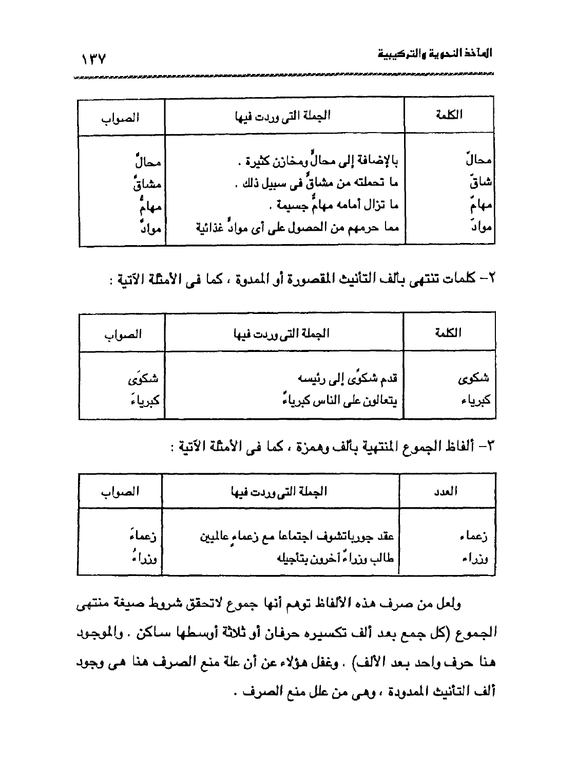3- ألفاظ الجموع المنتهية بألف وهمزة، كما في الأمثلة الآتية: