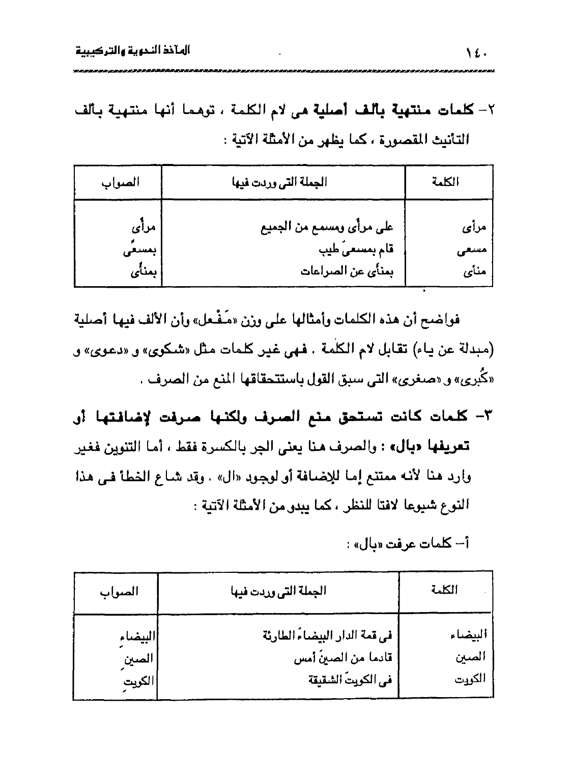 فواضح أن هذه الكلمات وأمثالها على وزن "مَفْعَل" وأن الألف فيها أصلية "مبدلة عن ياء" تقابل لام الكلمة. فهي غير كلمات مثل "شكوَى" و "دعوَى" و "كبرَى" و "صغرَى" التي سبق القول باستحقاقها المنع من الصرف.