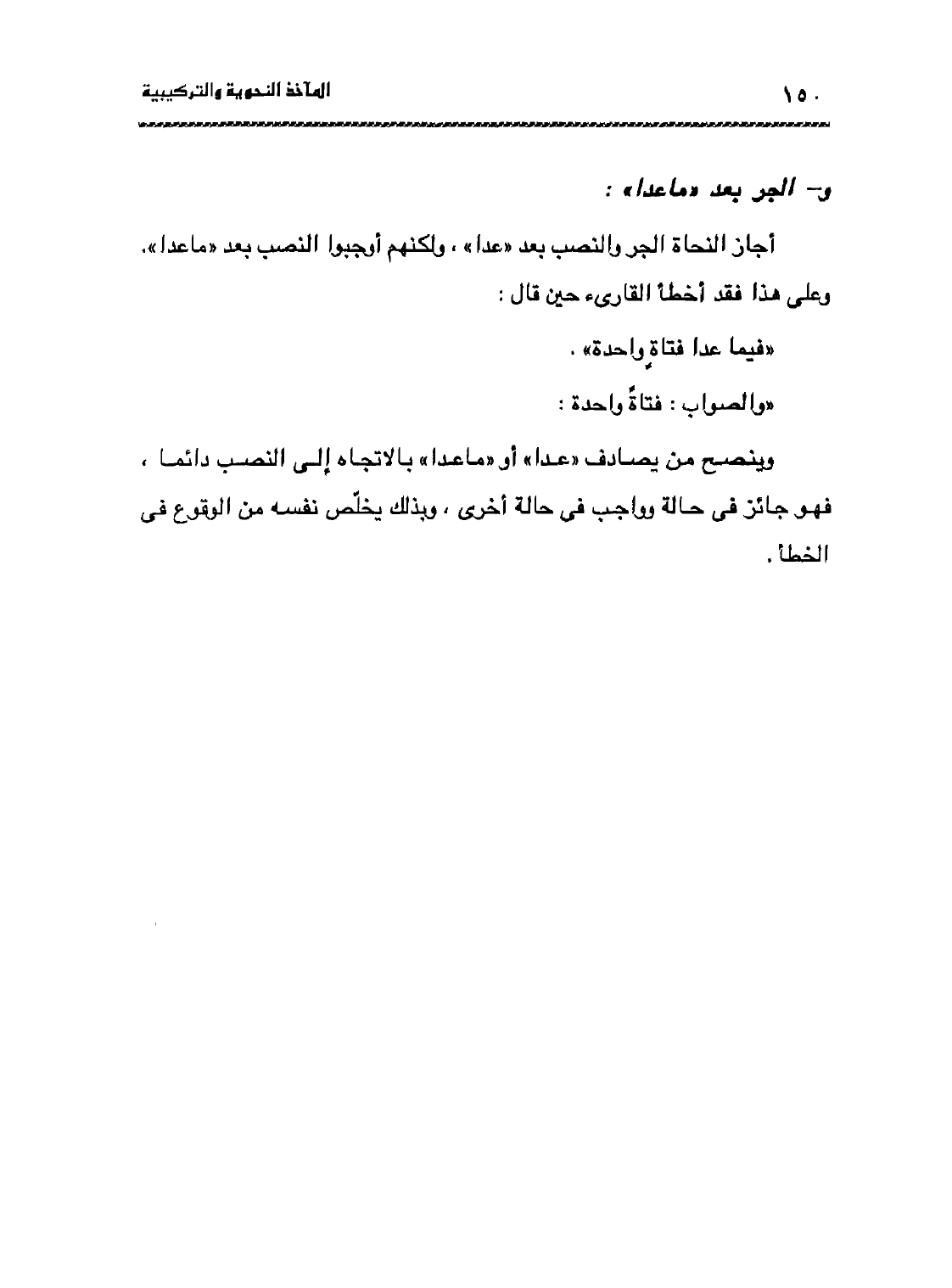 وينصح من يصادف عدا أو ما عدا بالاتجاه إلى النصب دائمًا، فهو جائز في حالة وواجب في حالة أخرى، وبذلك يخلص نفسه من الوقوع في الخطأ.
