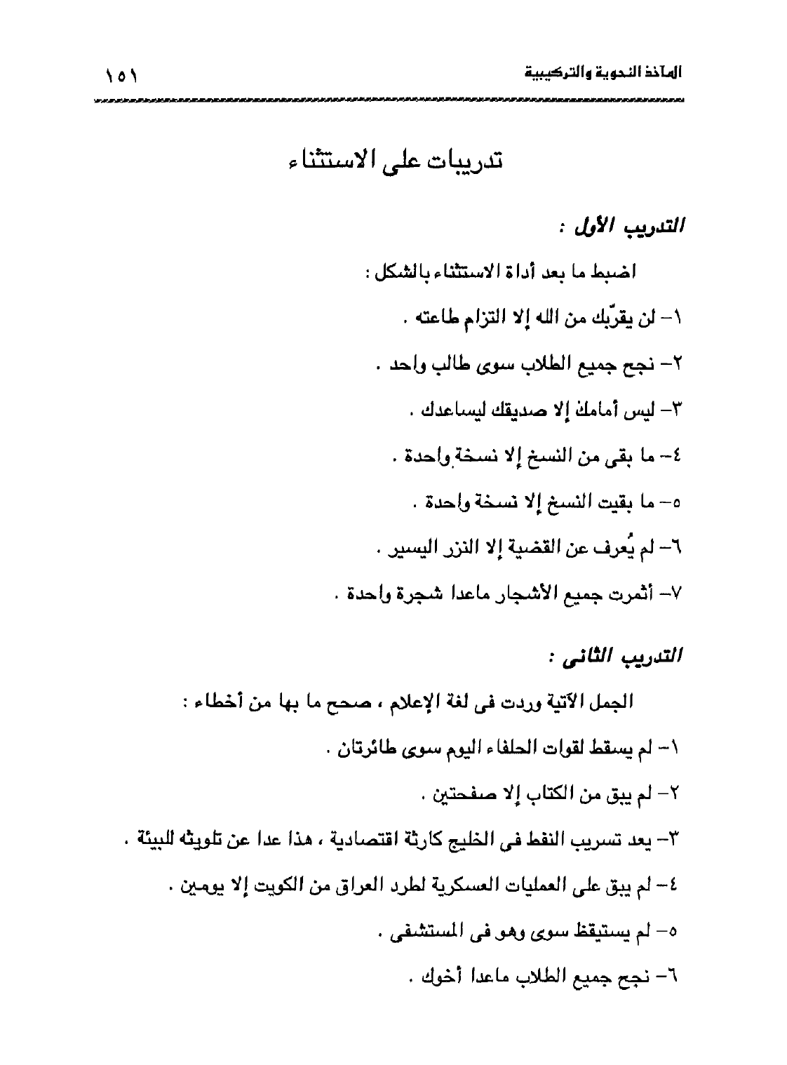 تدريبات على الاستثناء: