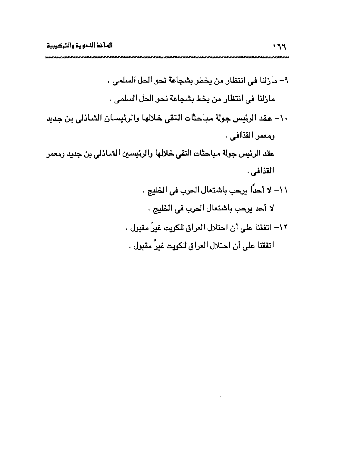 12- اتفقنا على أن احتلال العراق للكويت غيرَ مقبول.