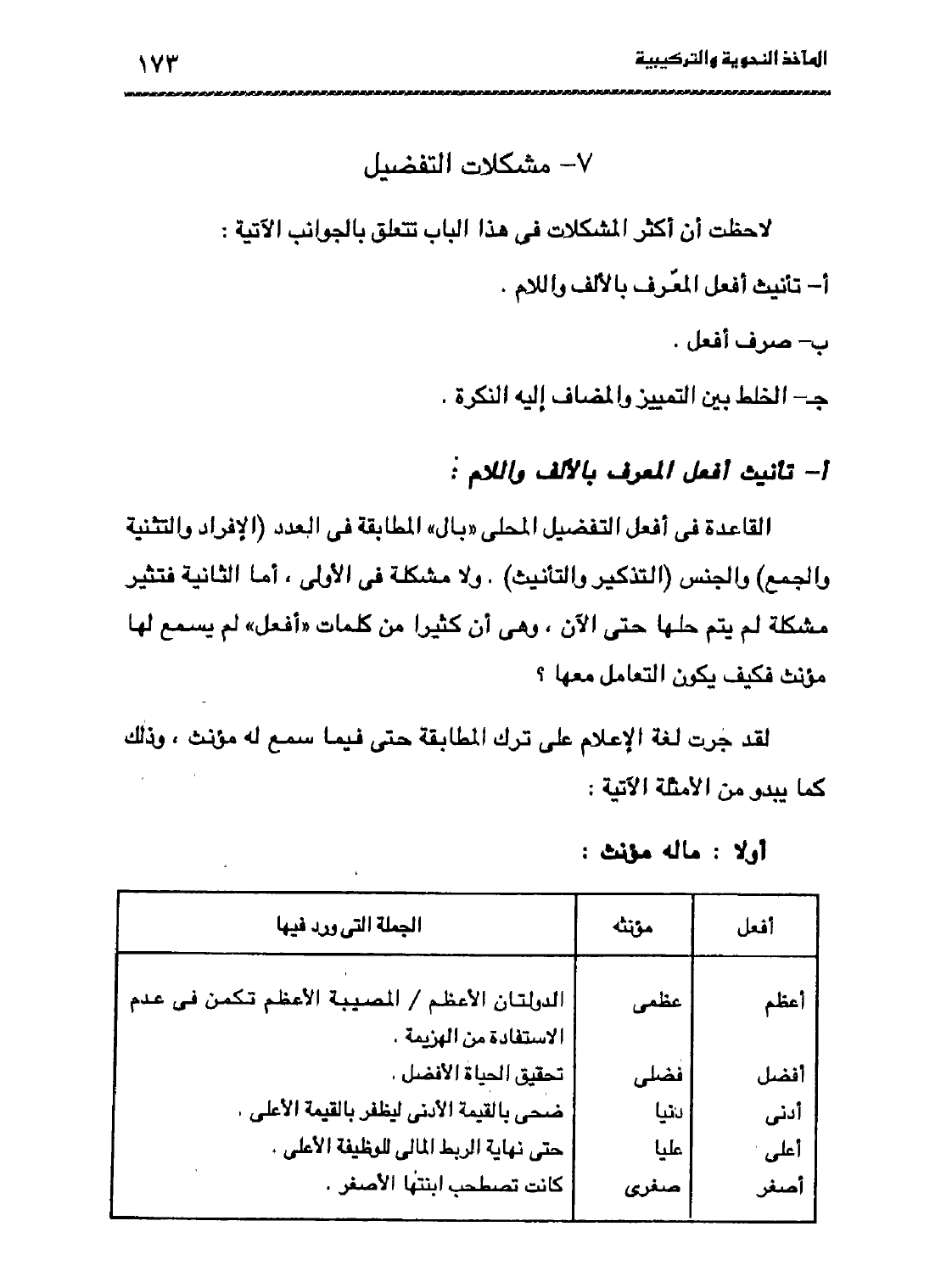 أ- تأنيث أفعل المعرَّف بالألف واللام.