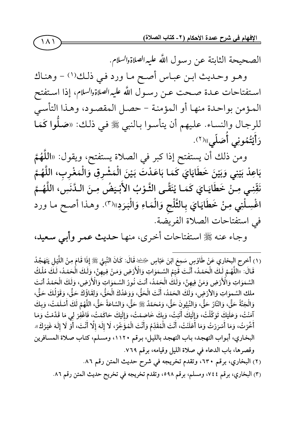 (¬2) البخاري، برقم 630، وتقدم تخريجه في شرح حديث المتن رقم 86.