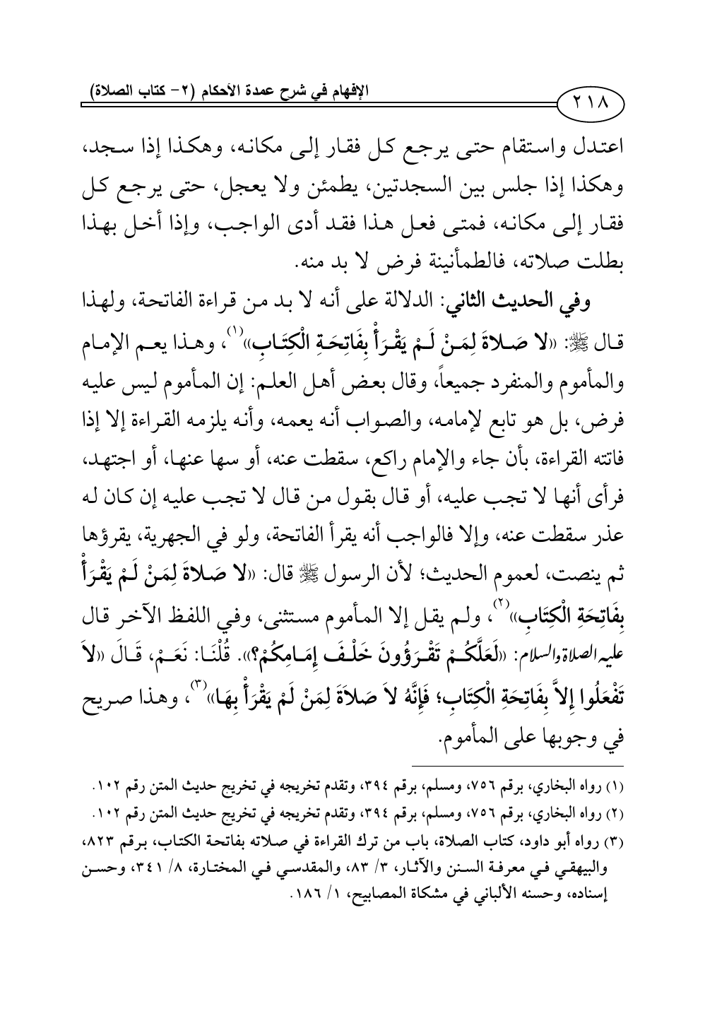 (¬2) رواه البخاري، برقم 756، ومسلم، برقم 394، وتقدم تخريجه في تخريج حديث المتن رقم 102.