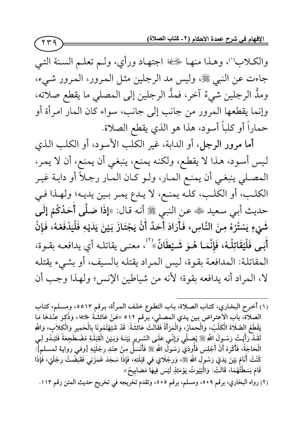 (¬2) رواه البخاري، برقم 509، ومسلم، برقم 505، وتقدم تخريجه في تخريج حديث المتن رقم 113.