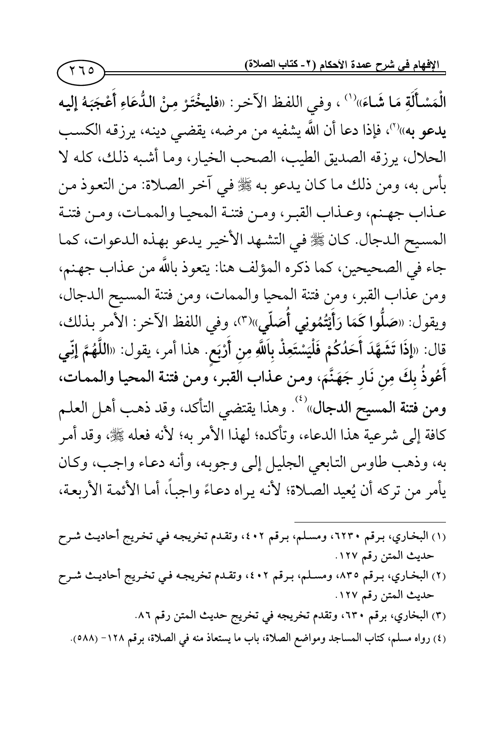 (¬4) رواه مسلم، كتاب المساجد ومواضع الصلاة، باب ما يستعاذ منه في الصلاة، برقم 128 - (588).