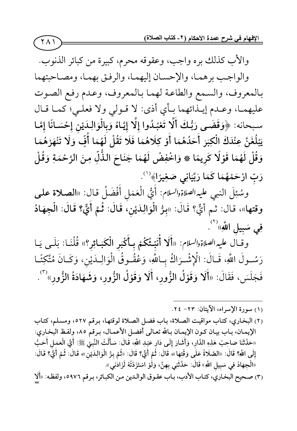 (¬1) سورة الإسراء، الآيتان: 23 - 24.