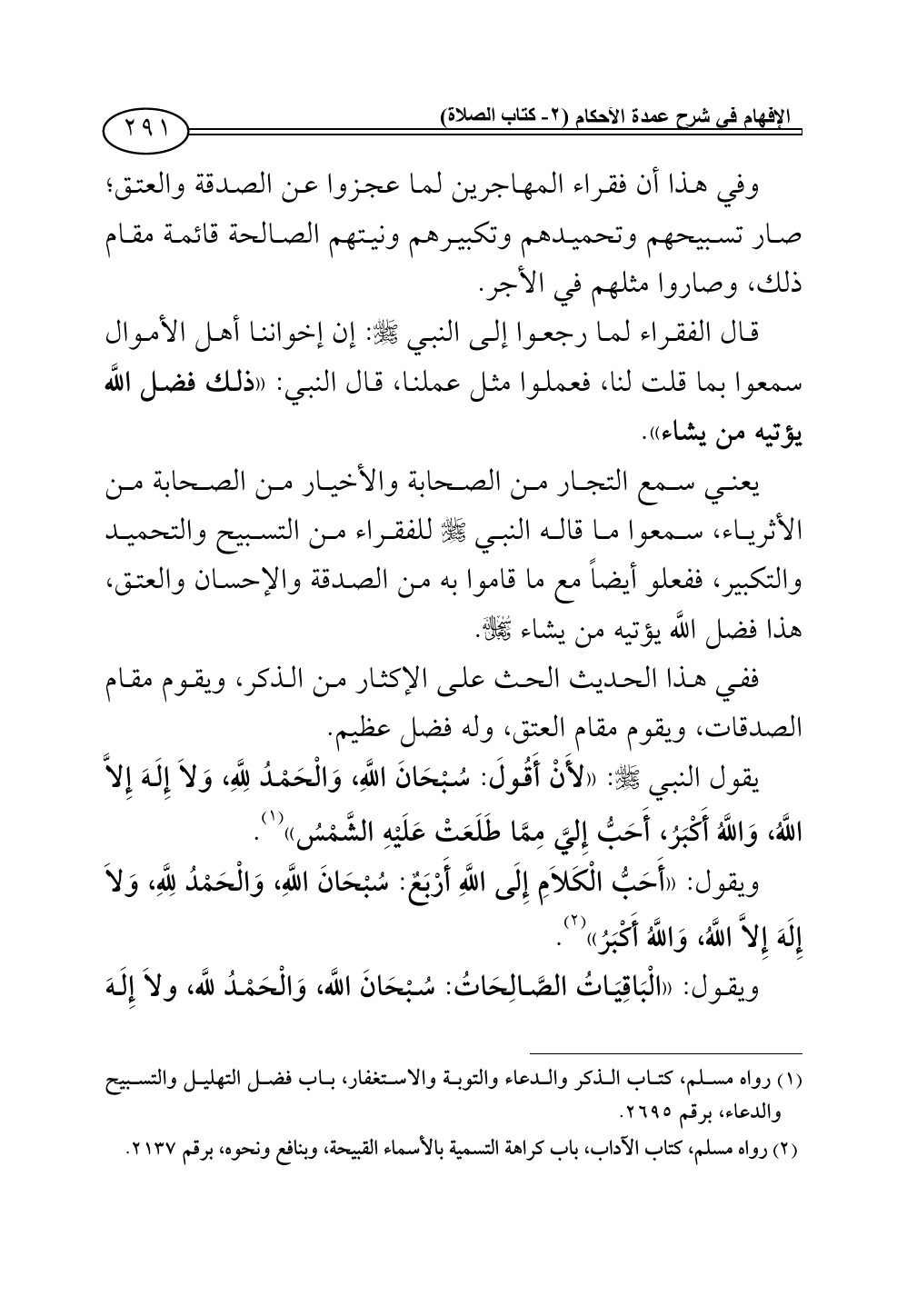 (¬1) رواه مسلم، كتاب الذكر والدعاء والتوبة والاستغفار، باب فضل التهليل والتسبيح والدعاء، برقم 2695.
