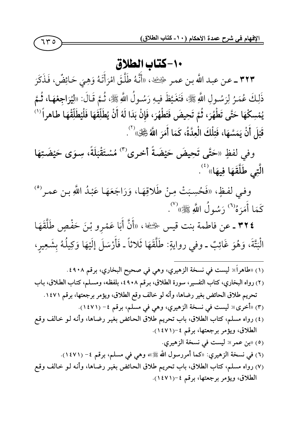(¬7) رواه مسلم، كتاب الطلاق، باب تحريم طلاق الحائض بغير رضاها، وأنه لو خالف وقع الطلاق، ويؤمر برجعتها، برقم 4 - (1471).