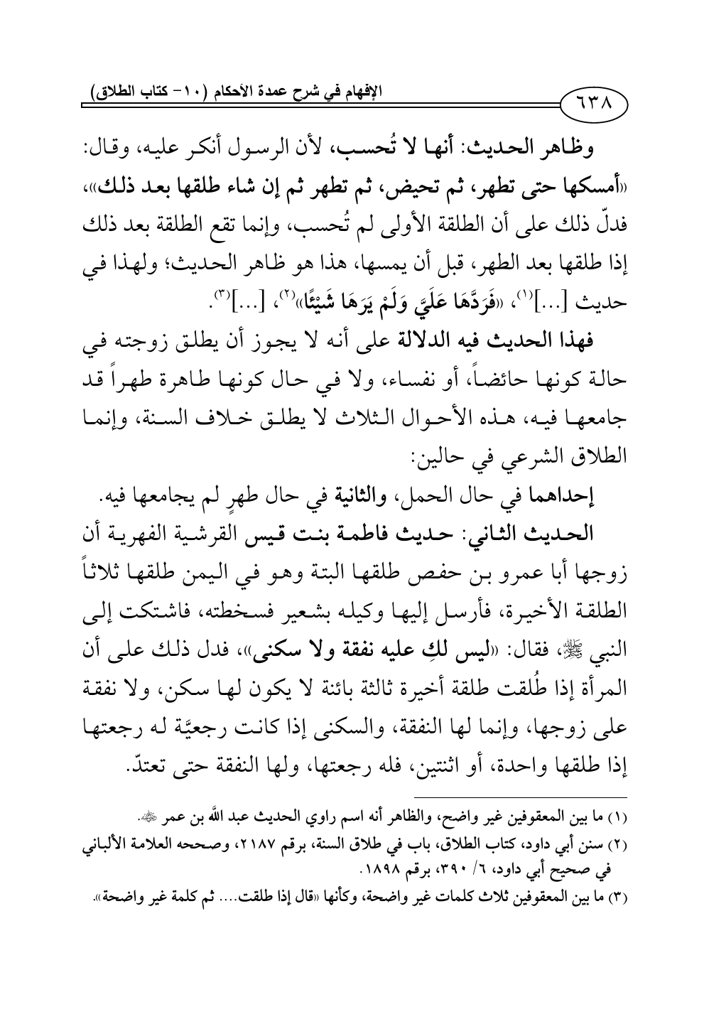 (¬2) سنن أبي داود، كتاب الطلاق، باب في طلاق السنة، برقم 2187، وصححه العلامة الألباني في صحيح أبي داود، 6/ 390، برقم 1898.