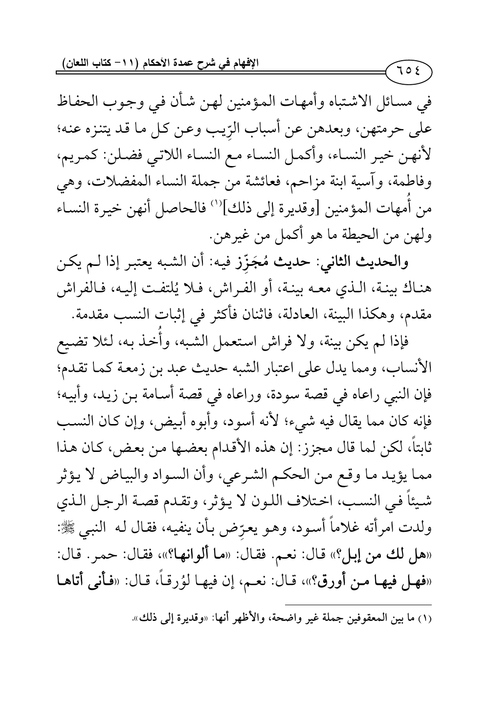 في مسائل الاشتباه وأمهات المؤمنين لهن شأن في وجوب الحفاظ على حرمتهن، وبعدهن عن أسباب الرِّيب وعن كل ما قد يتنزه عنه؛ لأنهن خير النساء، وأكمل النساء مع النساء اللاتي فضلن: كمريم، وفاطمة، وآسية ابنة مزاحم، فعائشة من جملة النساء المفضلات، وهي من أُمهات المؤمنين [وقديرة إلى ذلك] (¬1) فالحاصل أنهن خيرة النساء ولهن من الحيطة ما هو أكمل من غيرهن.