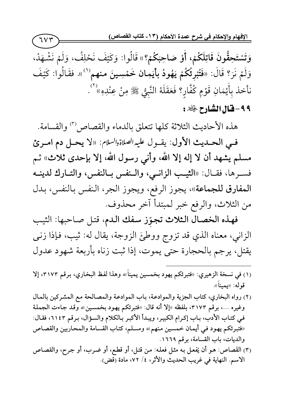 هذه الأحاديث الثلاثة كلها تتعلق بالدماء والقصاص (¬3) والقسامة.