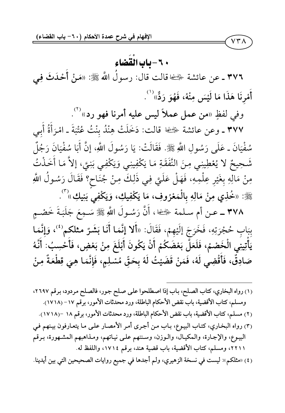 (¬2) مسلم، كتاب الأقضية، باب نقض الأحكام الباطلة، ورد محدثات الأمور، برقم 18 - (1718).