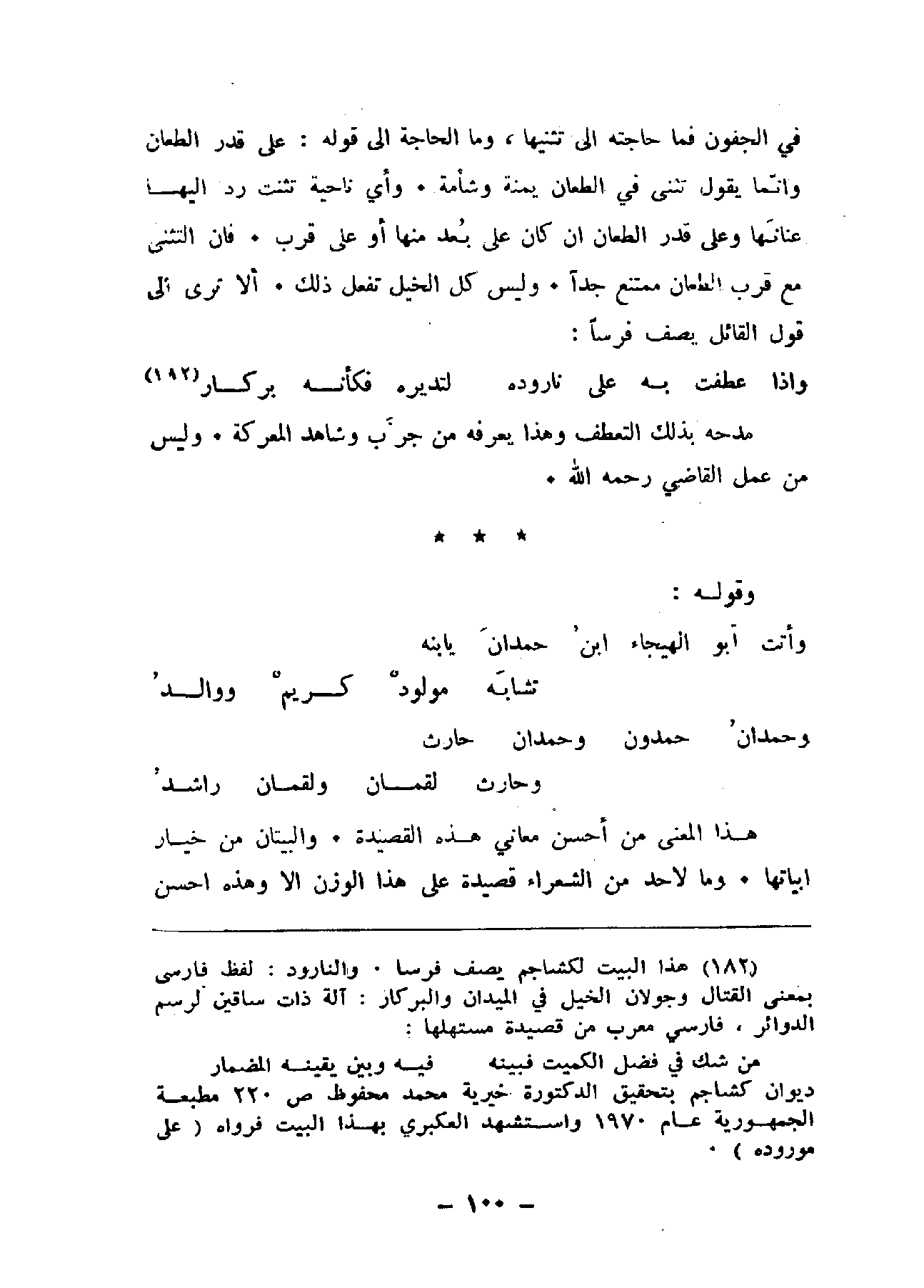 في الجفون فما حاجته إلى تثنيها، ومال الحاجة إلى قوله: على قدر الطعان إن كان على بعد منها أو على قرب. فإن التثني مع قرب الطعان ممتنع جداً. وليس كل الخيل تفعل ذلك. ألا ترى إلى قول القائل يصف فرساً: