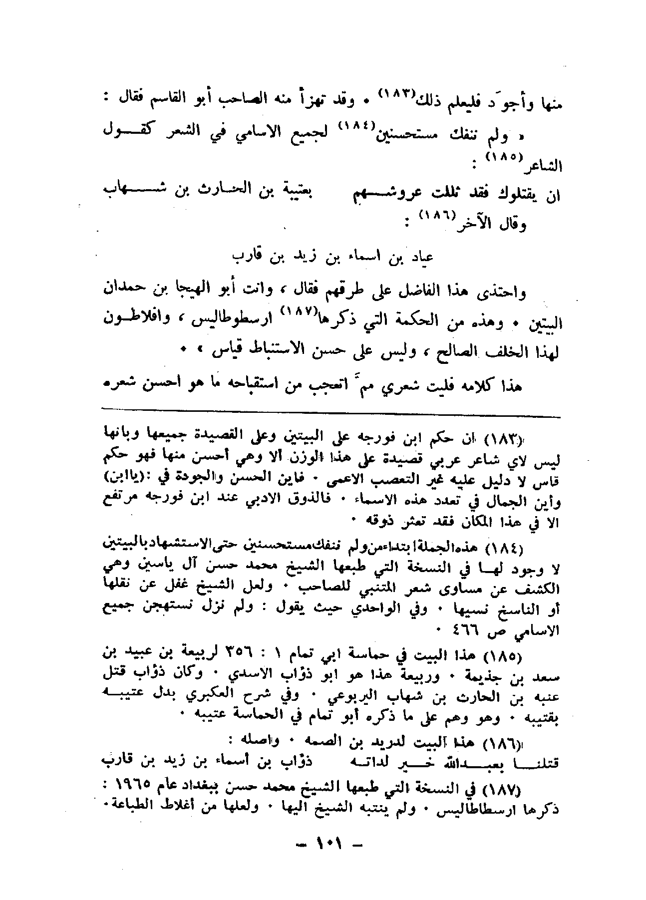 واحتذى هذا الفاضل على طرقهم فقال، وأنت أبو الهيجا بن حمدان البيتين. وهذه من الحكمة التي ذكرها ارسطوطاليس، وأفلاطون لهذا الخلف الصالح، وليس على حسن الاستنباط قياس.
