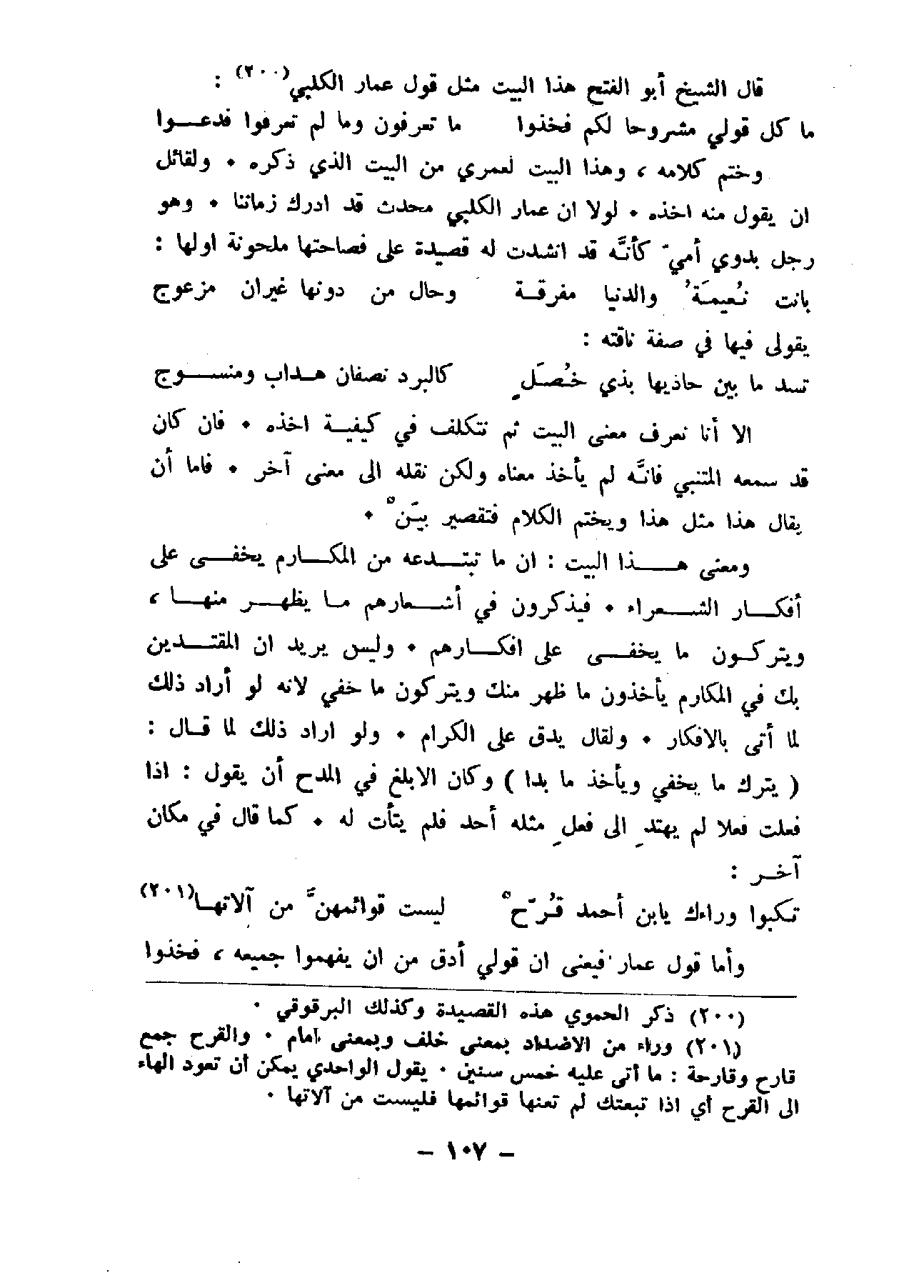 وختم كلامه، وهذا البيت لعمري من البيت الذي ذكره. ولقائل أن يقول منه أخذه. لولا أن عمار الكلبي محدث قد أدرك زماننا. وهو رجل بدوي أمي كأنه قد أنشدت له قصيدة على فصاحتها ملحونة أولها: