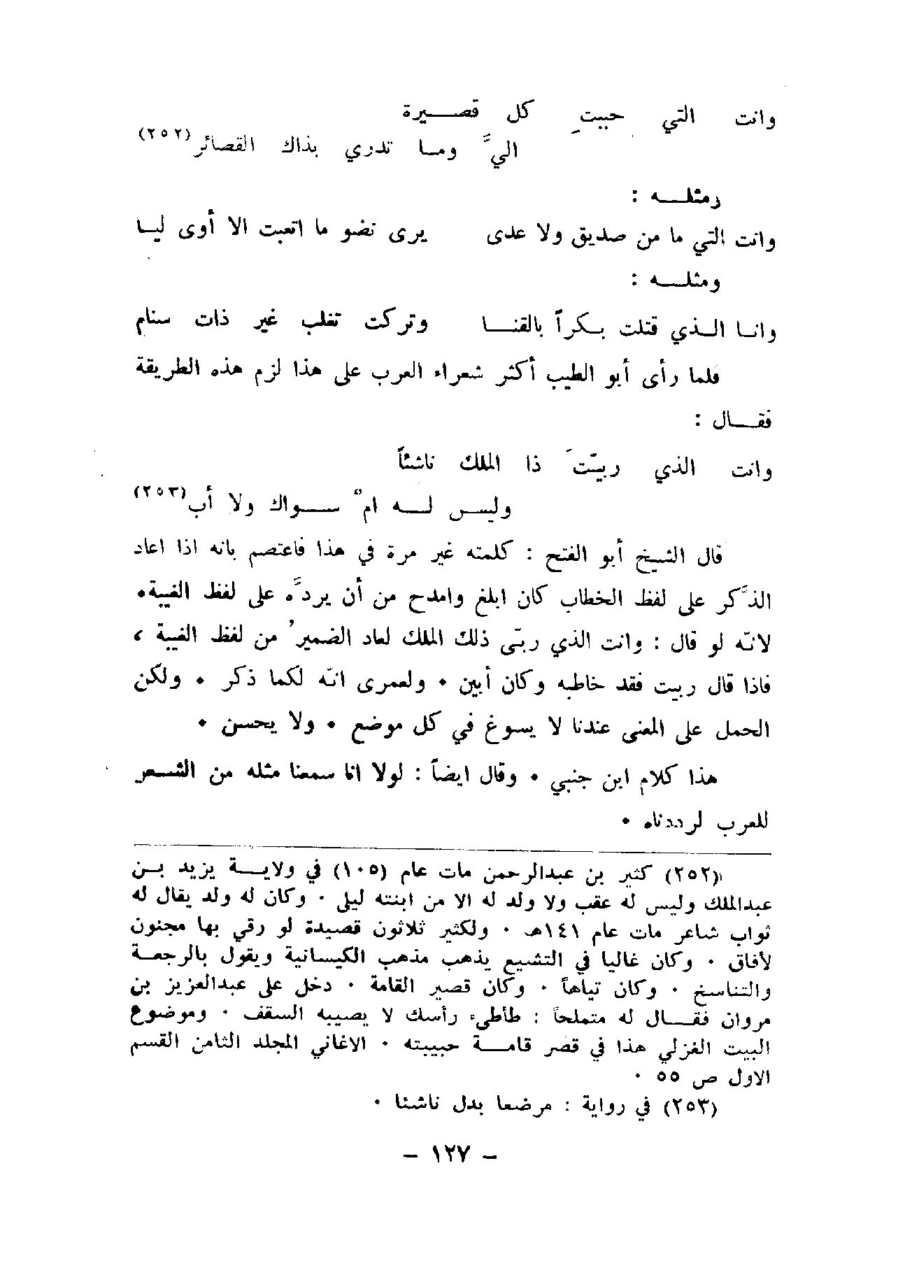 هذا كلام ابن جني. وقال أيضاً: لولا أنا سمعنا مثله من الشعر للعرب لرددناه.