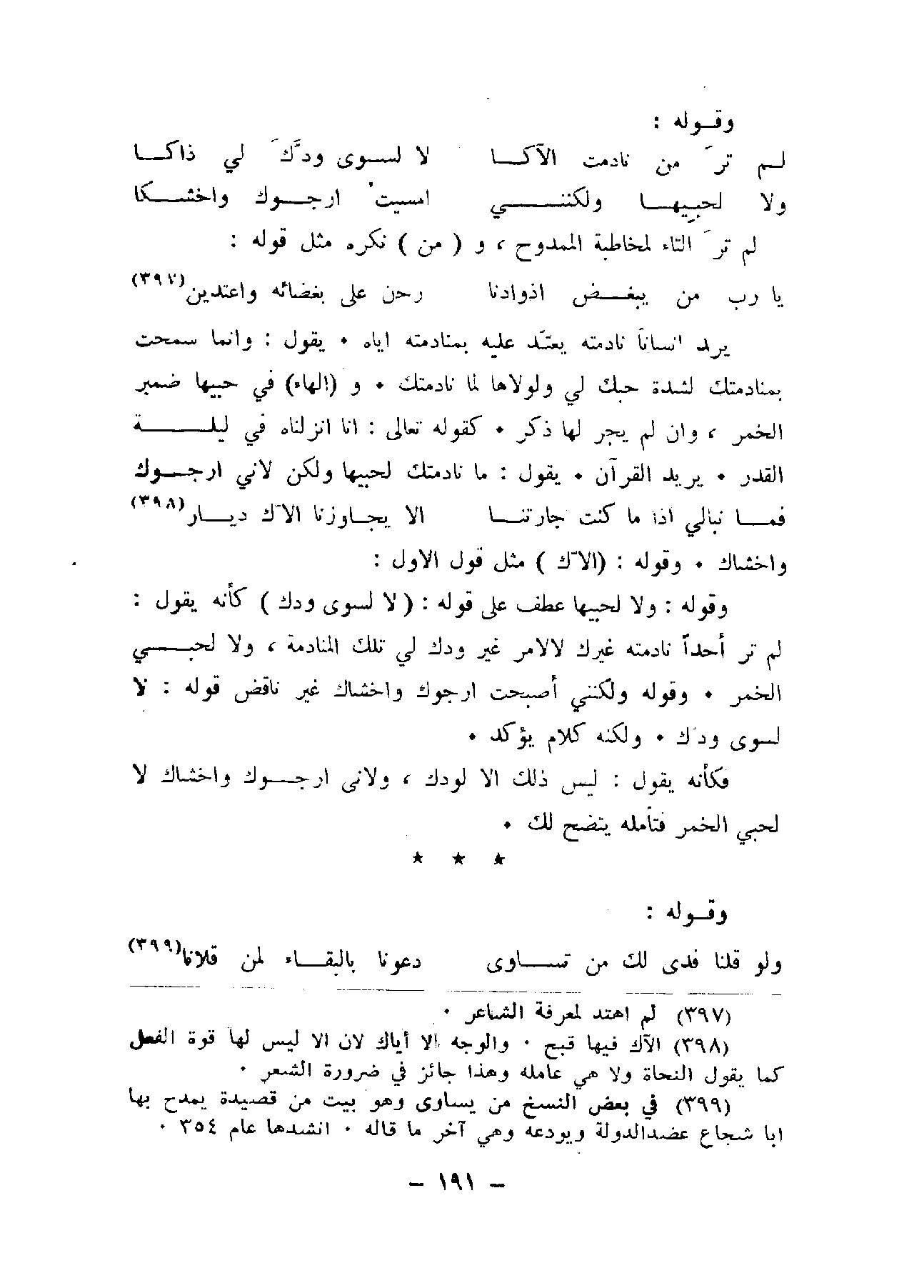 يريد إنساناً نادمته يعتد عليه بمنادمته إياه. يقول: وإنما سمحت بمنادمتك لشدة حبك لي ولولاها لما نادمتك. و (الهاء) في حبيها ضمير الخمر، وإن لم يجر لها ذكر. كقوله تعالى: إنا أنزلناه في ليلة القدر. يريد القرآن يقول: ما نادمتك لحبيها ولكن لأني أرجوك