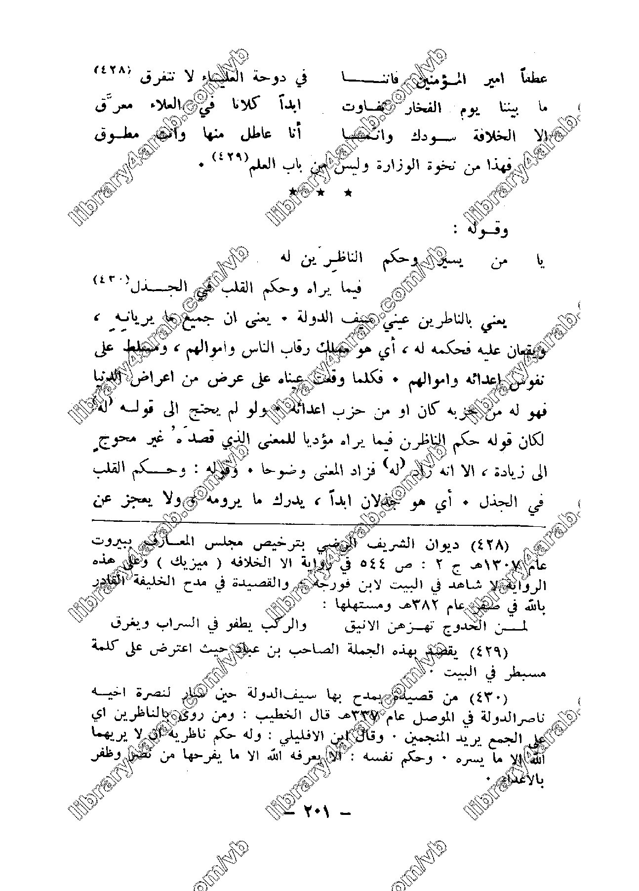 يعني بالناظرين عيني سيف الدولة. يعني أن جميع ما يريانه، ويقعان عليه فحكمه له، أي هو مملك رقاب الناس وأموالهم، ومساط على نفوس أعدائه وأموالهم. فكلما وقعت عيناه على عرض من أعراض الدنيا فهو له من حزبه كان أو من حزب أعدائه. ولو لم يحتج إلى قوله (له) لكان قوله حكم الناظرين فيما يراه مؤدياً للمعنى الذي قصده غير محوجٍ إلى زيادة، إلا إنه زاد (له) فزاد المعنى وضوحاً. قوله: وحكم القلب في الجذل. أي هو جذلان أبداً، يدرك ما يرومه، ولا يعجز عن