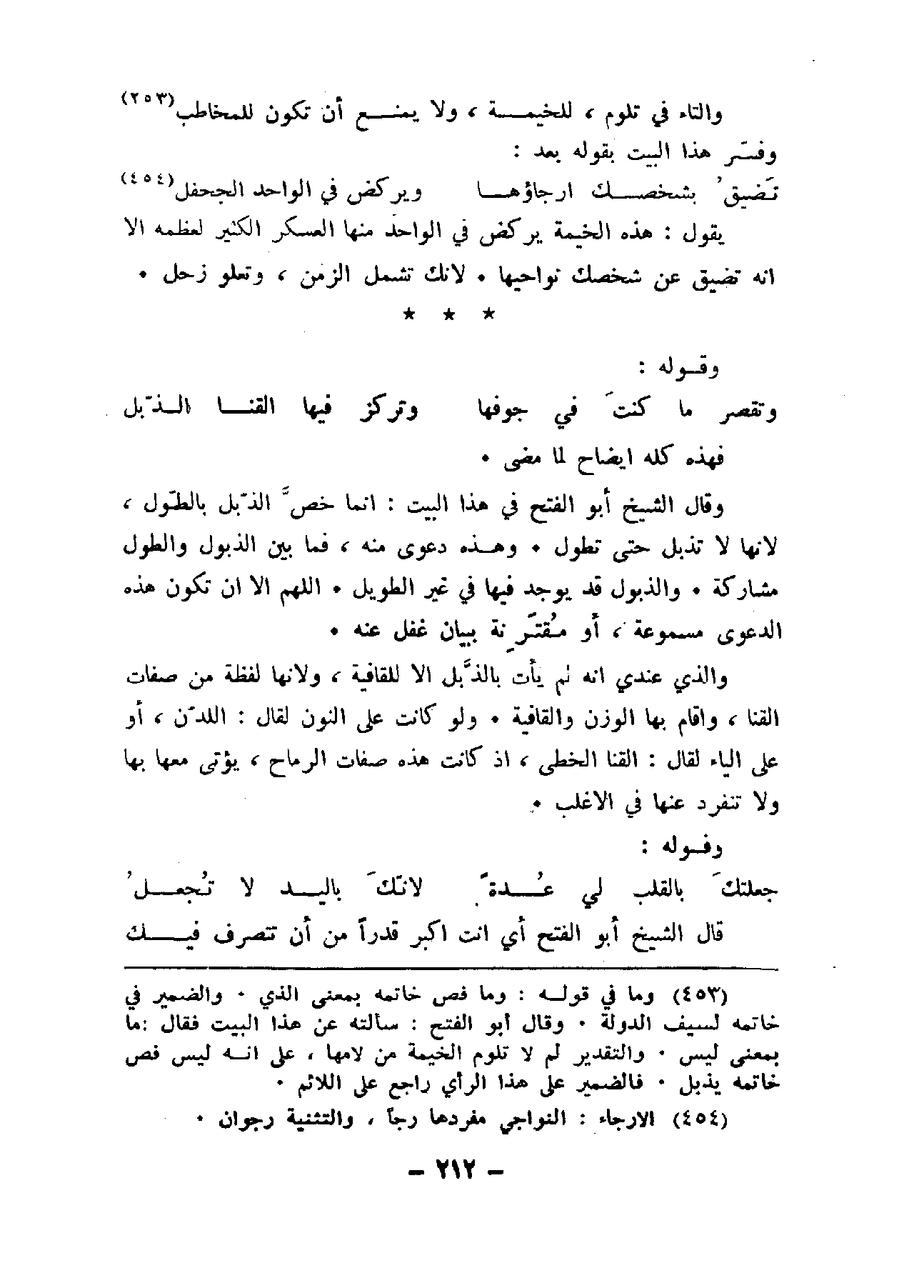 قال الشيخ أبو الفتح في هذا البيت: إنما خص الذبل بالطول، لأنها لا تذبل حتى تطول. وهذه دعوى منه، فما بين الذبول والطول مشاركة. والذبول قد يوجد في غير الطويل. اللهم إلا أن تكون هذه الدعوى مسموعة، أو مقترنة ببيان غفل عنه.