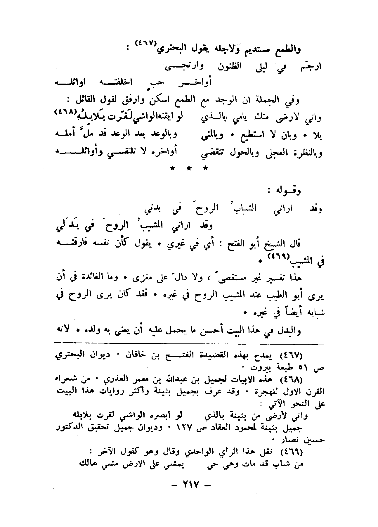 الطيب عند المشيب الروح في غيره. فقد كان يرى الروح في شبابه أيضاً في غيره.